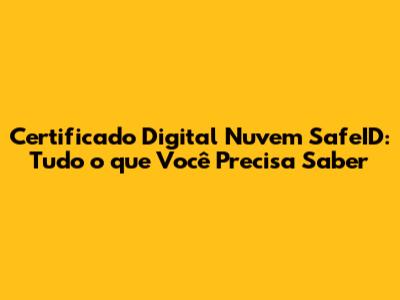 O Que é Certificado Digital Nuvem SafeID? Uma Visão Geral