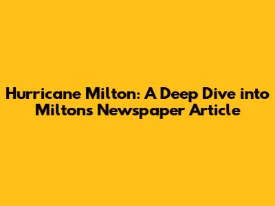 Hey everyone! Today, we're diving deep into something pretty significant: the newspaper articles surrounding Hurricane Milton. You know, those massive storms that really shake things up? Well, when a storm like Milton hits, the local news goes into overdrive, and we're going to unpack what Milton's newspaper article might have covered. Think of it as a historical snapshot, a chronicle of a community facing nature's fury. We'll explore the kind of language they'd use, the information they'd prioritize, and the impact it would have had on the folks living through it. It's not just about reporting the facts; it's about capturing the human element, the resilience, and the aftermath. So, grab a coffee, get comfortable, and let's break down what makes a newspaper article about a hurricane like Milton so compelling and important. We're talking about the stuff that goes beyond just the weather report, the stories that stick with you long after the winds have died down.