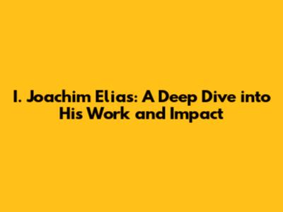 I. Joachim Elias: A Deep Dive Into His Work And Impact