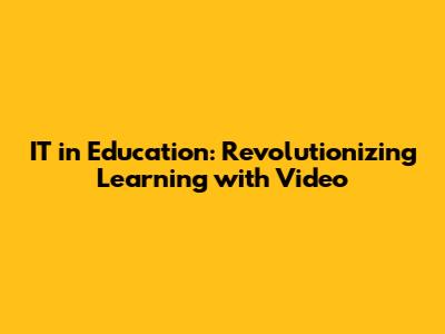 IT In Education: Revolutionizing Learning With Video