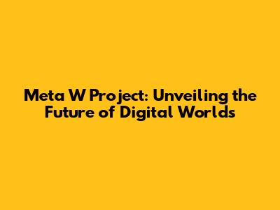 Meta W Project: Unveiling The Future Of Digital Worlds