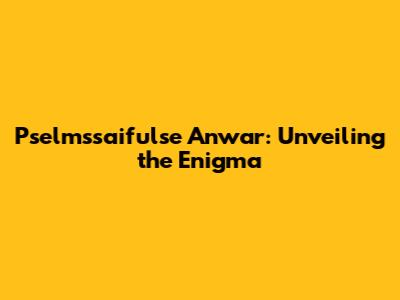 Pselmssaifulse Anwar: Unveiling The Enigma