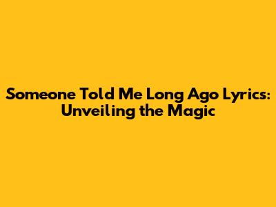 Hey guys! Have you ever stumbled upon a song lyric that just sticks with you, resonating deep within your soul? Well, for many, the phrase "someone told me long ago" does exactly that. It's a line that sparks curiosity and invites a sense of nostalgia. But where does it come from, and what's the real story behind it? Let's dive into the enchanting world of this lyric and uncover its origins, meaning, and enduring appeal.
