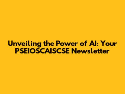 Unveiling The Power Of AI: Your PSEIOSCAISCSE Newsletter